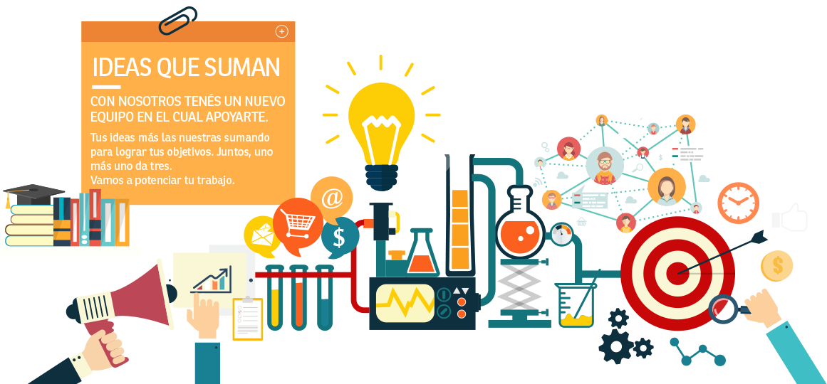 Estamos para sumar: Ideas, trabajo, apoyo y una mirada fresca. Pero también sabemos que con las ideas no alcanza. Estamos para ayudarte a concretarlas de manera eficiente y eficaz. Logrando los objetivos dentro de un presupuesto razonable.